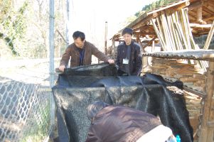 ![]() 最後にスタッフによりシイタケ原木の仮伏せをしました |