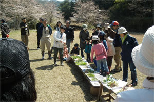 自然環境の大事さを見つめてもらうために、森の学舎で植樹と山菜料理等で、昨年度に引き続き植樹と山菜収穫で、春の自然を楽しみました。晴天で暖かい一日で、参加者・スタッフ共に春の自然が堪能できました。