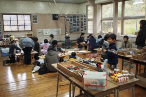 昼食準備が思ったよりかかってしまい、50分オーバーで、ドングリ工作にとりかかりました。参加者それぞれ工夫を凝らしたユニークな作品を作っていました。