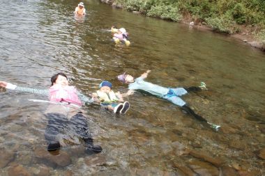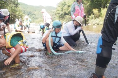 お天気も良く川がとてもきれいで気持ち良かったです。子供たちもたくさんの生き物を見ることができ、エビを捕まえることができ、夏休みの楽しい思い出の一つになったと思います。川に浮かんで流れる、大人も楽しかったです。ありがとうございました。