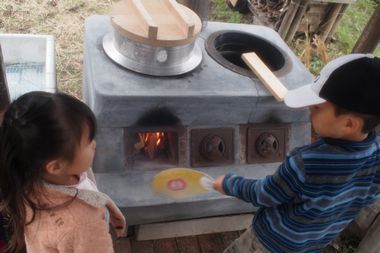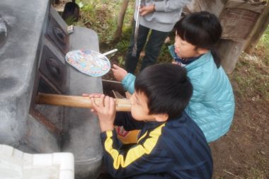 | 昼食準備(焙り焼きソーセージと釜戸炊飯) | |