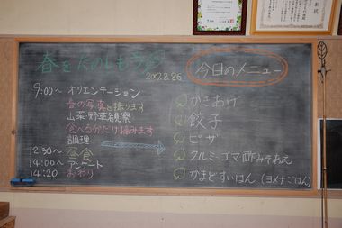 | 当日のスケジュールと野草メニュー | お土産にレアなハンドタオルを準備 |