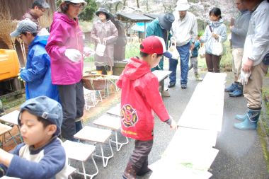追伸 地区の総会と重なってため、集会場前の駐車場が利用できなくなり、グランドを駐車場にしました。前日からの雨で、後続の車はグランド入り口でタイヤが滑ってしまい、なかなかグランドに入ることができず、スタッフが車を押すことで何とかグランドに入ることができました。