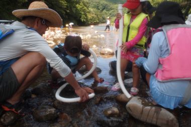 *´*☆彡 参加者の感想 。★彡*(一部抜粋 ・いつもいろいろ楽しませていただきありがとうございます。昨年とは、違っていたネイチャーゲームで親子ともに楽しい時間を過ごすことができました。スタッフの皆さま、お世話になりました。 ・生き物調べが楽しかった。魚を捕るのが楽しかった。 ・川遊びや素麺流し等、子供たちに経験させたくてもできなかったので、貴重なj経験でした。 ・延岡に来て2年目で、こんなに自然遊びができる所が近くにあることを知りました。また来てみたいと思いました。今日は一日お世話になりました。 ・川で生き物を探したのが楽しかったし、アメンボウのように流れるのも楽しかったです。 ・初めて参加したけど楽しかったです。また来たいと思います。 |