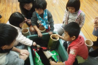 9:40 どんぐり苗床(ドングリポット)作り