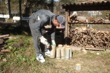 | 竹ポットの準備 | 竹串の準備 |