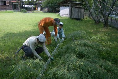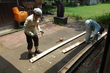 @ 素麺流し竹レールの作成(試そうめん流しあり)※4m×4本、そして長さ微調整