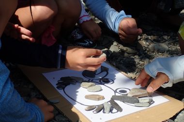 | 石を集めて合わせて絵を完成させる。 | 動物の特徴を聴いて、その動物をイメージする。 |