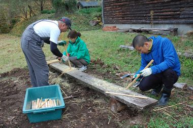 予定:8時45分までに集合、9時からオリエンテーション。11時から炙り焼きソーセージ作り、12時15分から昼食。13時からドングリを使っての学習(ドングリポットとドングリ工作)。15時30分にアンケート記入、終わり。