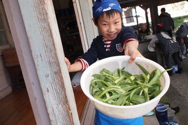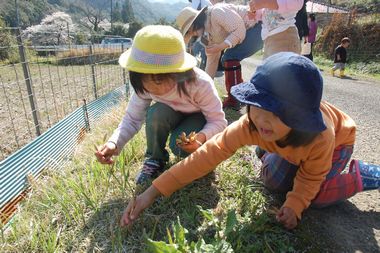 森の学舎のグランドと周辺の田んぼや土手で、食べることができる野草を収穫し名前を覚え調理をして食べて、春の自然の恵みに感謝し自然を大切にする思いを育むプログラムです。