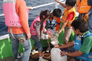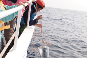 | 40分位船が進んだところで船を止めて海水を汲みます。 | |