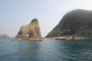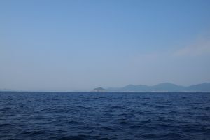 | 岸からここまで離れて海水を汲みました | カンムリウミスズメの繁殖地である枇榔島の近くを通りました。 |