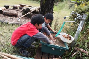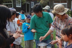 《14:00〜15:30》(矢北牧場から森の学舎に移動して、お弁当を食べた後)