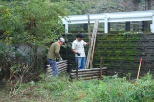 鍬やスコップを使って、草の根から抜いていきました。また、竹イカダで使用した竹を再利用して草置き(堆肥作り)場も作りました。ecoスクールの中で一番の重作業になると思う一日でした。スクール生の皆さまおつかれさまでした。