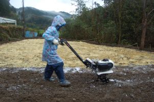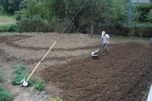 昨日おこなった畑づくで草がなくなった畑を、ミニ耕耘機の試運転を兼ねて耕してみました。草の根はまだ取り切れてないようです。次回の麦種まきでは、この耕耘機が活躍します。