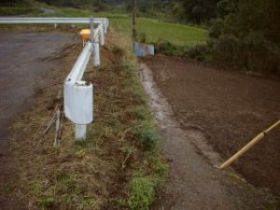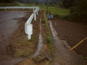 畑の上にある駐車場に降った雨水の全部が畑の中に流れ込んできます。畑の下層土は田んぼのような土なので、大量の雨水により溝がベトベト状態になり土が乾くのも遅いです。そこで、駐車場に降った雨水が畑に流れ込まないように、畑の石垣上に溝を掘ってみました。少量の雨水はうまく溝を流れてくれましたが、大量の雨水は?