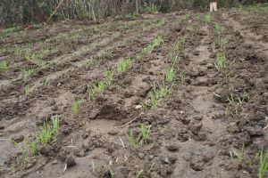 種まき後10日位で予定通り発芽してくれました。今年は暖かく氷や霜柱などがまだで時季は早いですが、茎が柔らかいうちに麦踏をしました。