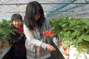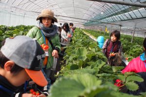 イチゴの収穫は始まったばかりで、まだ青い粒も多くあり熟したイチゴが少なかったので、スクール生が自宅に持ち帰り(もちろん有料)が、1パック(500g程度)しかありませんでした。3月から4月にかけては、イチゴ狩りで好きなだけ持ち帰ることができるそうです。