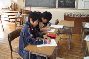 パン生地を一次発酵させている間の文集書きをしました。これまでのecoスクールで体験したことを一つずつ思い出しながら、思いでベスト、全体の感想等を書いてもらいました。子どもたちと保護者のスクール生全員の文集を作ります。
