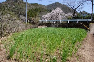現在の麦畑の様子ですが、心配していた麦は膝上の高さまでスクスクと育っています。森の学舎周辺のソメイヨシノも満開でした。