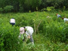 昨日から台風13号が近づいており、天気が心配でしたが、天気に恵まれて、汗びっしょりで下草刈り作業をしました。