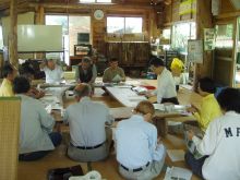 研修が一通り終わって、夜は懇親会が行われました。餃子と椎茸焼きと乾き物をつまみに、参加者それぞれの団体での活動内容や問題点などなど、いろいろな話ができました。次回の総会は、日向市ふるさとの自然を守り会で内定しました。(近くで良いなぁ)