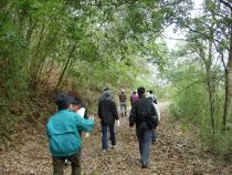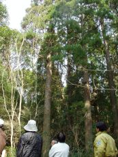 宮崎大学農学部の演習林は、500ヘクタール(100m×100mの500倍の面積)あり、針葉樹と広葉樹が住み分けされた林となっています。約1時間、高木先生の案内で演習林を散策をしました。