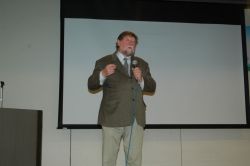 フェスティバル目玉である「C・W・ニコルさんの特別講演」には、テントを閉じて全員で聴講に行きました。ニコルさんは、長野県で、自ら荒れた森を購入し、生態系の復活を試みる作業を16年間行い、財団法人C.W.ニコル・アファンの森財団を設立し、多数の著書を執筆しています。
