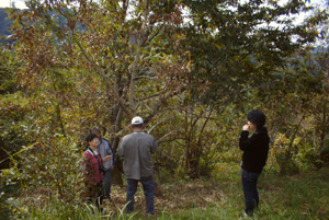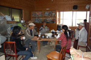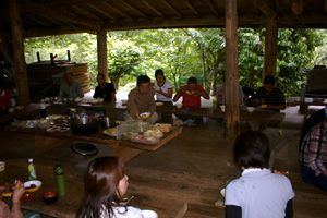 | 自然農園事務所兼住居でお茶とお昼ご飯をとりました。 | 旧里山斜面でサルナシの実を採取しました。 |