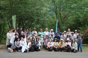 | 1997年62歳の時に農業を引退すると宣言。材価低迷で人の手が入らず、荒廃の一途をたどる森林の惨状を心配しておりました。この頃ジャン・ジオノ著「木を植えた男」の絵本に出会いました。羊飼いの男ブフィエが荒れ果てた大地に1人で黙々とカシの実など何十年も植え続け、荒野はやがて緑豊かな森に変わり、そこを離れていた住民の子孫が次第に戻って来ると言うストーリーです。私はこの本に衝撃的な感動を覚え、自分の持ち山(15ha)を本格的な混交林の山にしようと、仲間たちと森作りにかかりました。1979年に初めてネパールへトレッキングに行き、2度目は1983年、1999年3度目のネパールとの交流がロキシーヒルの名前の由来となりました。 1999年に第1回植樹祭を開催、以後2008年までに10回の植樹祭を開催。その間、3年前頃から毎年、高校生キャンプを受け入れ、自然を体験する子供たちの後押しを続けています。今後もこの森が環境教育に活用されることを重視した森作りを続けていきたい。 2003年(平成15年)1月に「みやざき森づくりボランティア協議会」が誕生しました。その年9月には第55回全国植樹祭のプレイベントとして「悠久の森づくりボランティア全国大会」が、西都市を主会場に盛会の内に行われました。全国から1500人もの人が集いましたが、その企画運営については、発足したばかりの本協議会が中心になって行ない、関係機関からの高い評価を受ける事ができました。現在16団体が加入しています。これからも、協議会の活動理念でもある人間と自然が共生する、自然の循環が滞りなく行われる「豊かな森」をめざした活動をしていきます。 |