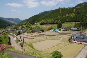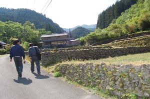 熊本県水俣市は、人・地域・経済が元気な村づくりを実現するために、元気村づくり条例を平成13年に策定し、翌年の平成14年に頭石(がくめいし/45世帯)地区が「村丸ごと生活博物館」の第1号となり、その後、久木野(くぎの/161世帯)・大川(おおかわ/95世帯)・越小場(こしこば/133世帯)が加わり4地区となっています。急な訪問であったこともあって、村丸ごと生活博物館担当の水俣市役所職員の冨吉さんが対応してくれました。本来は、地元の方が案内をしてくれるですが、農作業で忙しかったりして地区の方が対応できない時期もあるとのことでした。