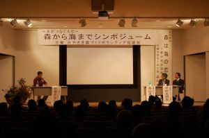 パネラーの多摩川源流研究所中村さんと圖師協議会会長の実践活動の紹介後に、基調講演後の休憩時に、パネルディスカッションで取り上げる質問を会場から集めた質問を使ってコーディネータの岩倉協議会理事の進行でパネルディスカッションが進みました。残念なことに協議会の図師会長は、インフルエンザで入院していて、パネラーとして参加できませんでした。