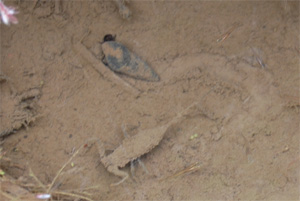 | タイコウチとカワニナです。この場所はたくさんのホタルが居るそうです。 | まさにメダカの学校でした。 |