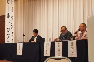 トークショー:岡本信人さん、福田さん(NPO法人のべおか市民力市場)・岸本さん(おもちゃ延岡病院)・長門さん(延岡走ろう会)