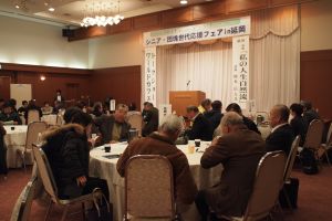 高齢者の豊富な知識や経験を生かして多様な分野で社会参加することにより、高齢者自身のいきがい・健康づくりはもとより、地域・社会全体の活性化を図るために、団塊世代でいきいきと活動をされている俳優の岡本信人氏の講演やトークショー、地域活動団体の紹介(ワールド・カフェ)が行われました。子どもの森は、地域活動団体の一つとしてフェアに参加しました。