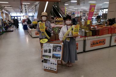 午前中の休耕田復活プロジェクト終了後、イオン日向店において黄色いレシートのキャンペーン協力へ昨年に引き続き参加しました。横山理事長・横山純理事・加納理事の3人で参加しました。時間は、15:10から約1時間です。