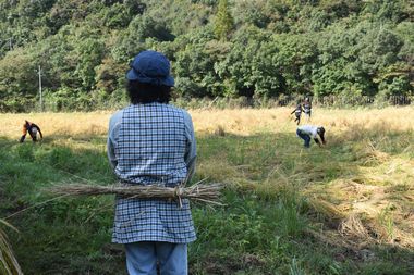 その農家さんから、手刈りで稲をしてもらえれば、収穫した米を全部持って帰って良いから稲刈りをしないかとお話がありました。早速、田んぼ復活プロジェクトとecoスクールの参加者とそのスタッフに連絡をして稲刈りをすることにしました。