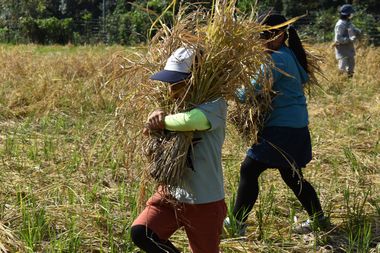 収穫量は、籾付きで約45kgでした。スタッフ以外の参加者には、一人約2Kgの籾付き米を分配しました。