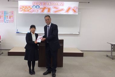 2023年度九州ろうきんNPO助成フォーラム連合愛のカンパ贈呈黄色いレシートとヒムカイザー令和5年度総会