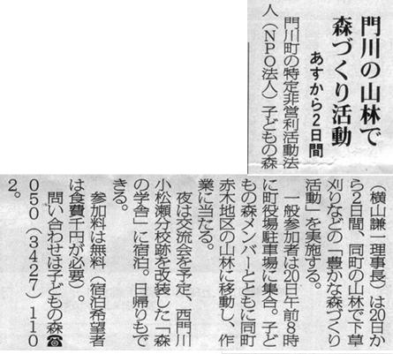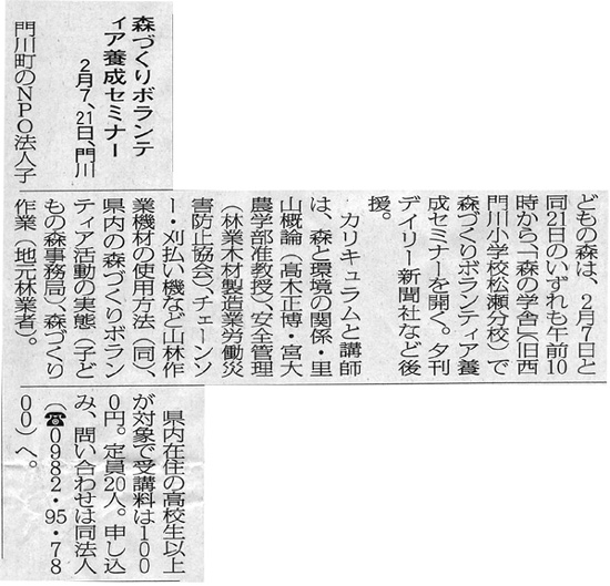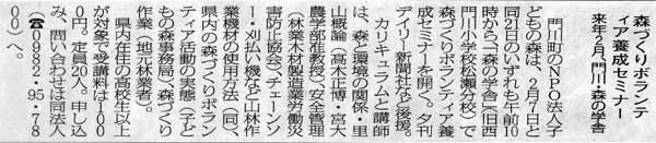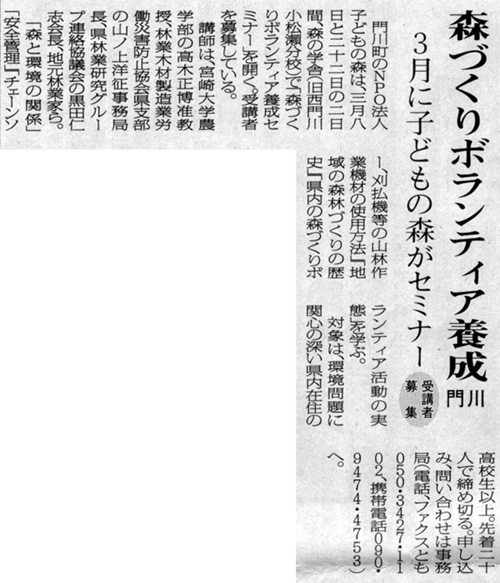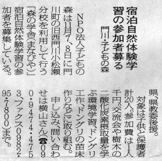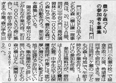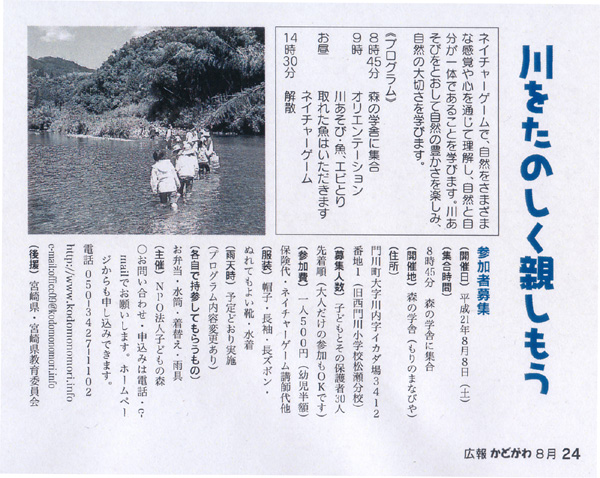 子どもの森の事務局がある門川町の広報紙に、初めて子どもの森の活動案内が掲載されました。