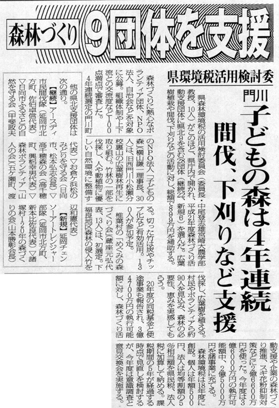 森林づくり9団体を支援
