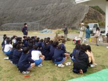 ![]() 林業や椎茸の話に子どもたちは 熱心に聞き入っていました |