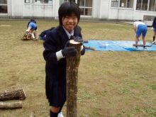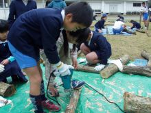 総合学習の時間を使って、子どもたちが町内の暮らし(農林水産業と環境の)学習の一環として、椎茸のコマ打ち体験を行いました。昨年から柘植(つげ)校長先生と打ち合わせを数回重ねて、椎茸栽培体験を実施する運びになりました。