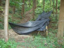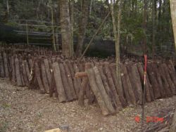 ![]() 竿にほだ木を立てかけていきます。 |