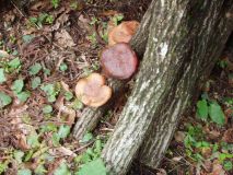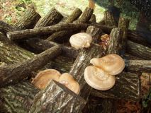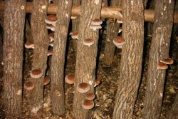 | もうすぐ5月なのですが、先日の雨のせいでしょうか、春遅くに椎茸が発生していました。4月になったら椎茸の発生もないであろうと思っていたので、ほだ場の点検を疎かにしていましたので、椎茸の傘が開き、かなり大きくなっていました。春で気候が良いので殆どの椎茸に虫(芋虫の似た凄く小さい)がついていて、傘の部分が赤く変色していました。椎茸を割ってみると虫が中まで入り込んで、椎茸もスカスカ状態で、とても食べれる状態ではなかったです。そんな椎茸でも、ほだ木から栄養を吸い取るので、すべて落としました。 | ![]() |