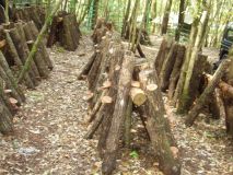 昨年ほだ木起こしていたほだ木は、デイキャンプの時に一度崩しているので、そちらも一緒に起こして行きました。竿を支える足をチェーンソーで作りながら、間伐杉の竿を9本張って、そこにほだ木をならべていきます。昨年のほだ木が約150本と今回のほだ木約300本をならび終えたのは、3時を過ぎていました。