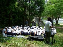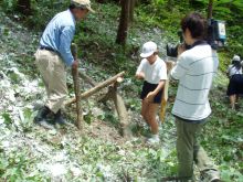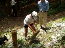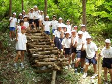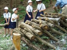 小学校での椎茸ほだ木の本伏せ 2006年6月13日