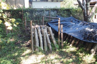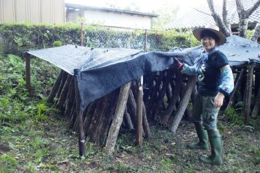 | ほだ木をすべて起こしました | 遮光ネットを張りなおして完成です |