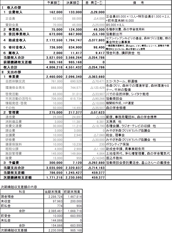 平成23年度 特定非営利活動に係る収支計算書