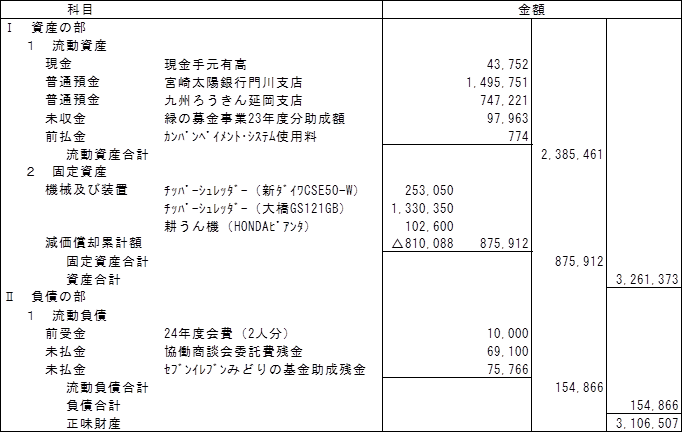 平成23年度 特定非営利活動に係る財産目録